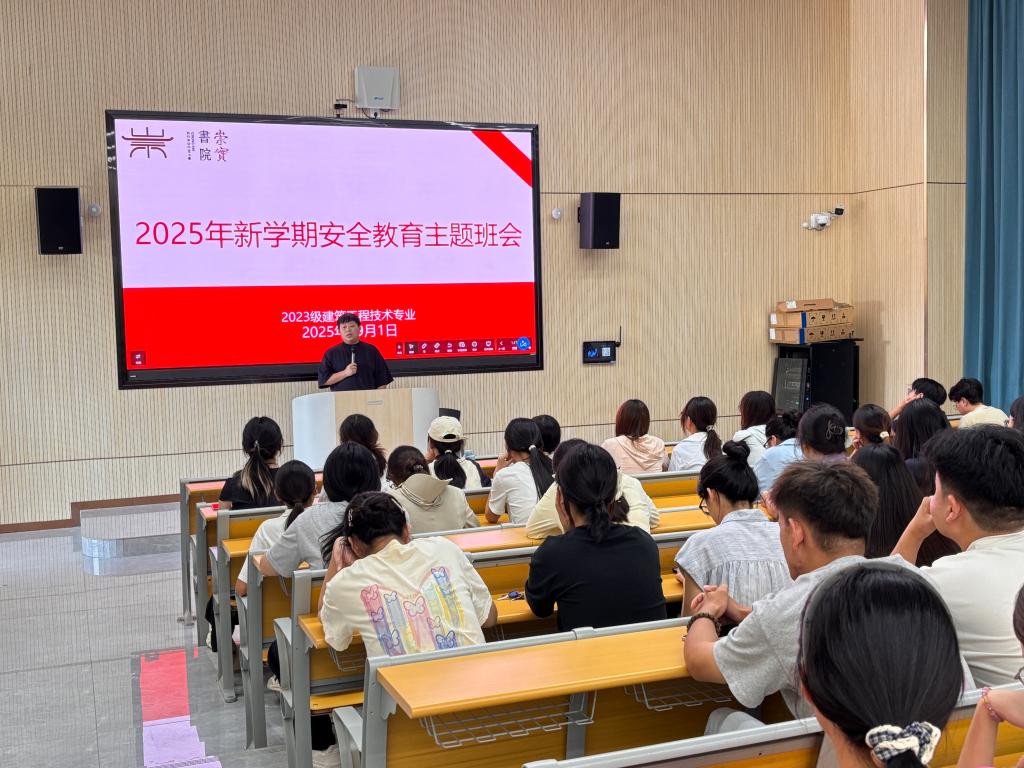 2023级大数据与会计专业3-4班专业辅导员何雨9月1日在综合实验楼101召开安全教育主题班会22级酒店管理、24级护理2班辅导员张志翔于9月1日15:00在实验楼312召开新学期安全教育主题班会。