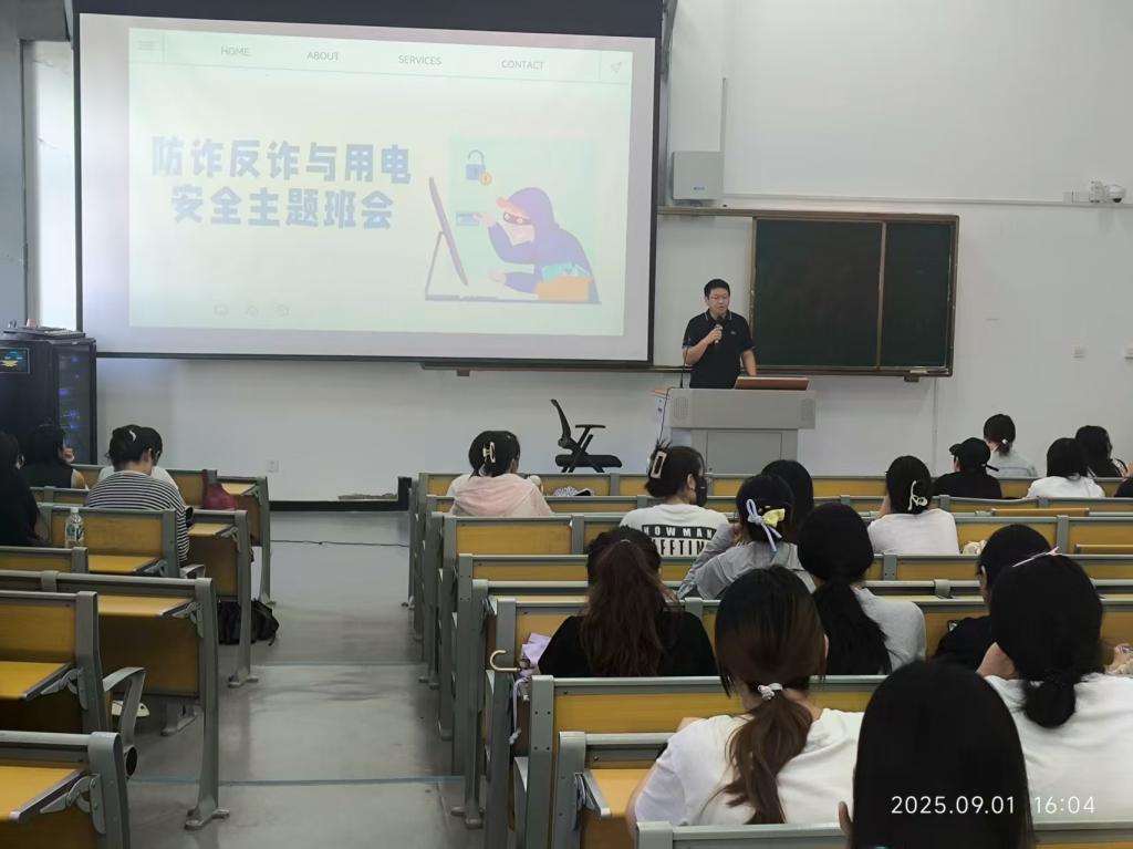 2023级大数据与会计专业2班和2024级金融工程班辅导员陈尚9月1日在理综楼209召开安全教育主题班会