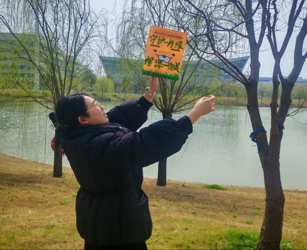 同学们积极响应号召,深入校园各个角落,有的细心擦拭树干上的灰尘与污渍,为树木挂上自制的卡片;有的手持夹子和垃圾袋,认真清理草坪中的纸屑、塑料瓶等垃圾,用双手还原校园的整洁,并在活动说明中分享自己对绿色环保的理解与感悟。